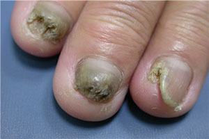 2、變色:這也是灰指甲較為直觀的特征,有些引起灰指甲的真菌本身就存在顏色,當(dāng)真菌繁殖積聚到應(yīng)該程度顏色就通過病甲表現(xiàn)出來。較為常見的病假顏色有白色、灰色、黃色、褐色等。