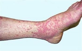 1、皮膚癥狀:以下肢大關(guān)節(jié)附近及臀部分批出現(xiàn)對(duì)稱分布、大小不等的斑丘疹樣紫癜為主,紫癜可突出皮面、伴輕微癢感,初為鮮紅色,繼而為暗紅色、褐色。